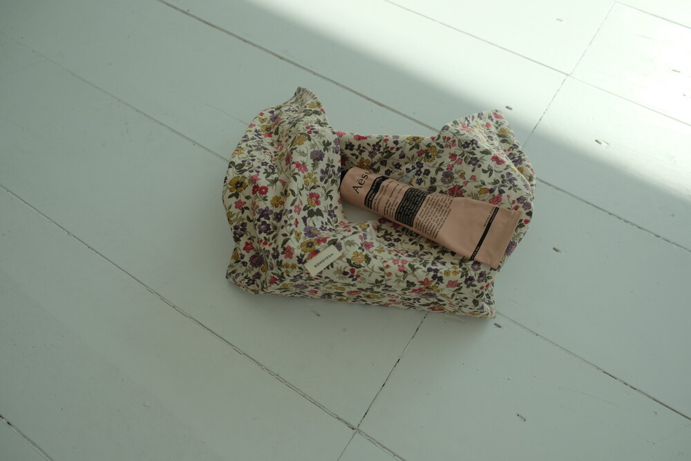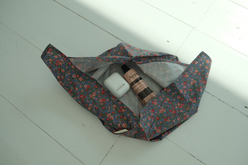 끈만 슥 묶어주면 완성되는 보자기 가방이에요.